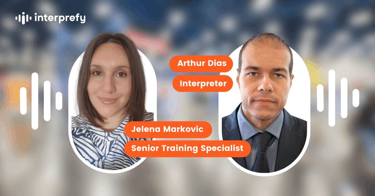 Portuguese(BR) interpreter and founder of King Tradução, Arthur Dias connects with Interprefy's Senior Training Specialist, Jelena Markovic. In this episode, we talk about the difference between onsite and online meetings and events for interpreters, the significance of training and preparation of all parties involved, as well as the remote support's role at Interprefy.